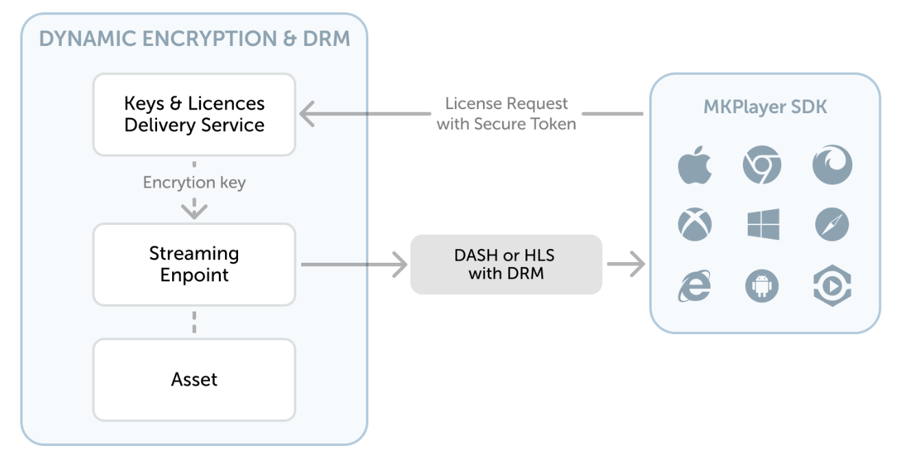 Enable content protection for your assets (Live or VOD) by following these high-level steps: