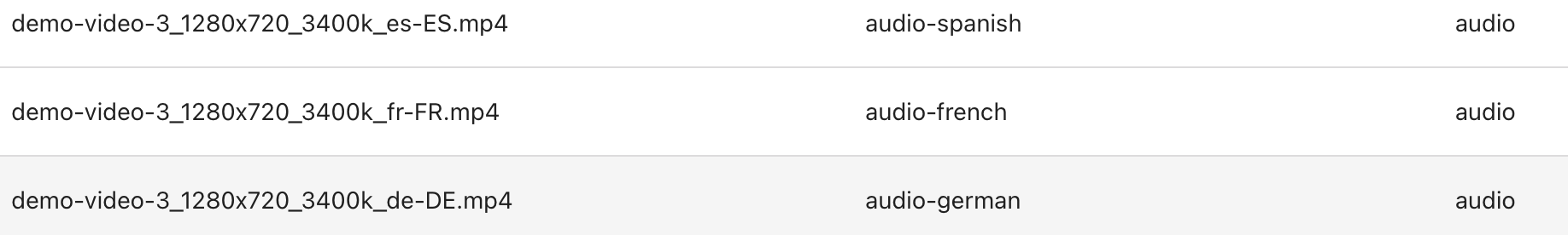 Once all jobs are complete you should see the following new tracks in your encoded assets: